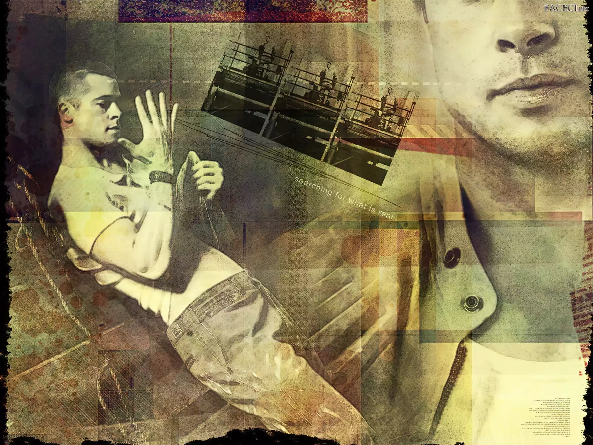 +, Brad Pitt, Tatuaż Brad Pitt Brad Pitt pokój, kanapa, Skazany na śmierć, Prison Break, Robert Knepper Skazany na śmierć, kraty, Prison Break, Wentworth Miller Wentworth Miller, okulary Robert Pattinson, Aktor Brad Pitt Kapelusz, Ashton Kutcher, Koszula